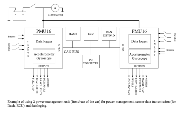 Seadmel on 16 suure voolu väljundit. Mitut PMU seadet on võimalik ühendada läbi CAN-BUSi ühtsesse võrku ja sellega tekitada konkreetse projekti jaoks vajalik väljundite arv.